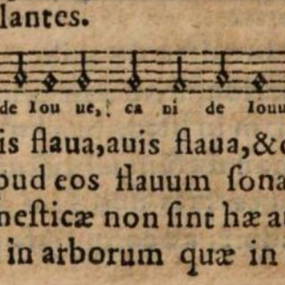 Um dos primeiros registros em partitura de que se tem notícia, no Brasil. Escrito pelo francês Jean de Lery, em 1557, em sua viajem à França Antártica (Rio de Janeiro). Relata um ritual Tupinambá em saudação a ave Canidé, uma espécie de Arara.