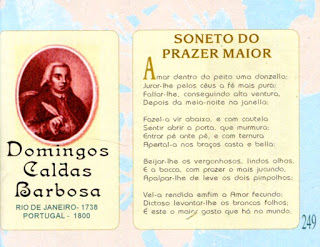 Domingos Caldas Barbosa, poeta e músico carioca, autor e divulgador das primeiras Modinhas e Lundus no Brasil e em Portugal. Celebrizou-se pelas trovas improvisadas ao som da sua viola de corda de arame.